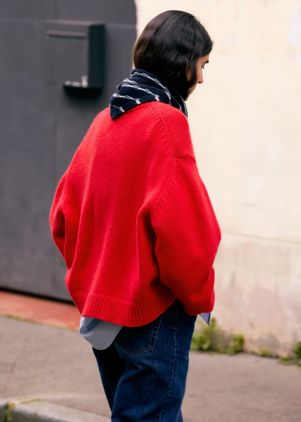 L'écharpe Lou est une écharpe triangle en laine, tricotée en point damier.